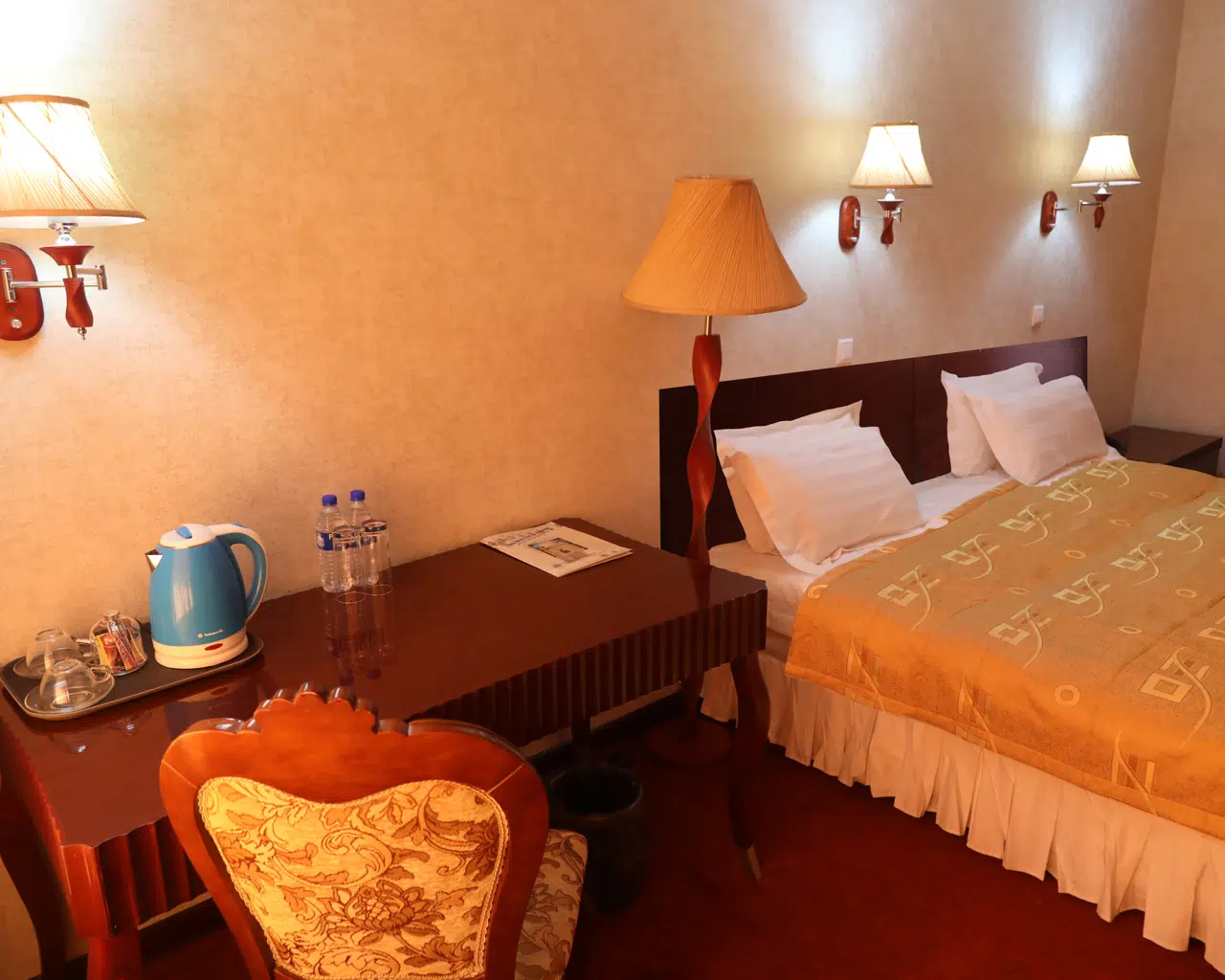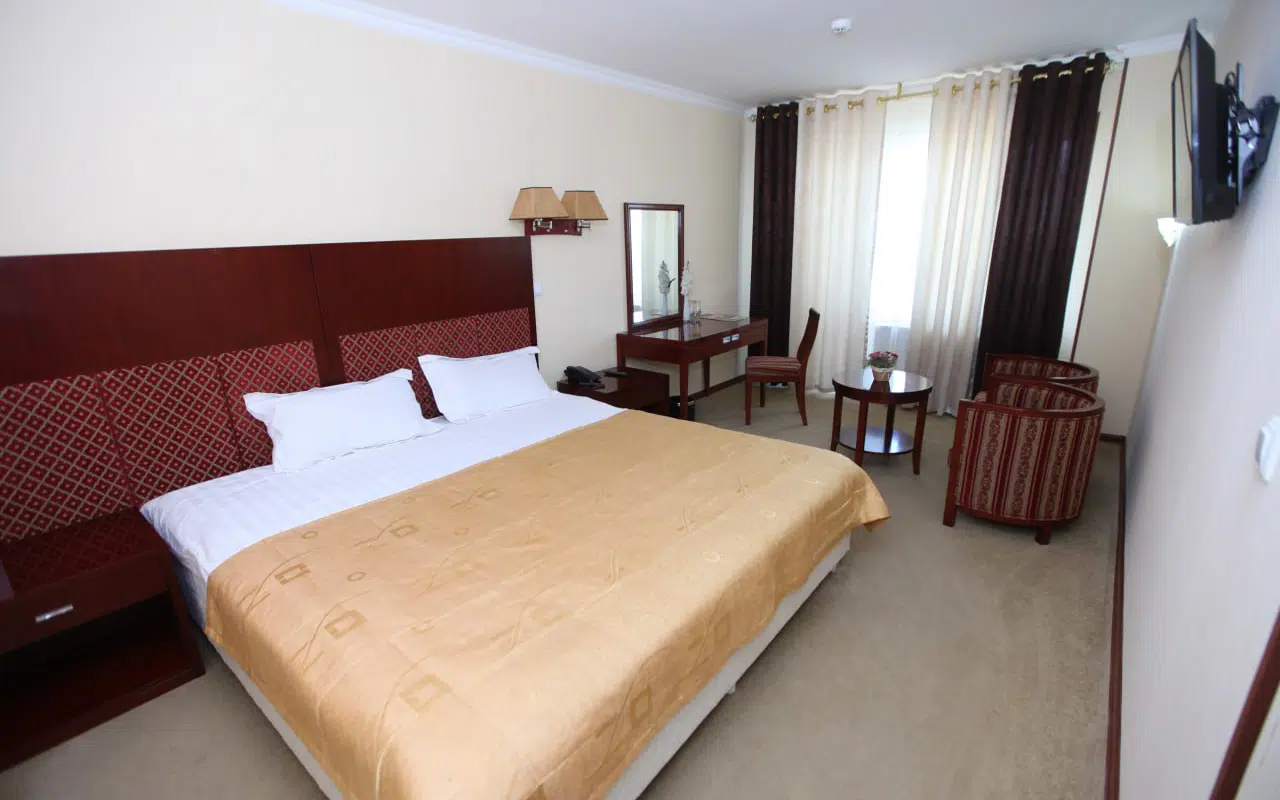 Отель предоставляет гостям номера с кондиционером, письменным столом, кофемашиной, холодильником, сейфом, телевизором с плоским экраном, террасой и собственной ванной комнатой с биде. В каждом номере гранд-отеля «БУХАРА» есть постельное белье и полотенца.